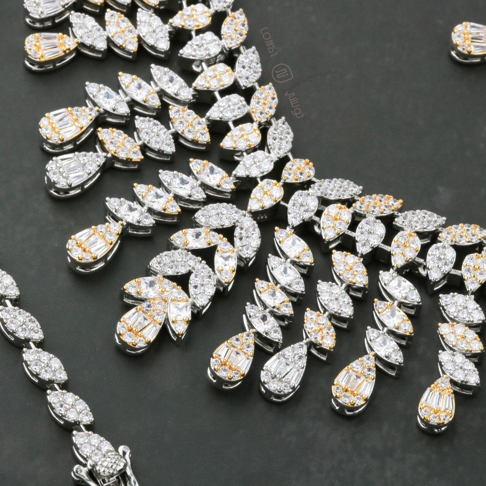 - اطقم ذهب تصميم الماس تنسيق بديع بين الفضي والذهبي ويجمع بين الأناقة والفخامة ما يجعله مناسبًا لجميع الإطلالات.