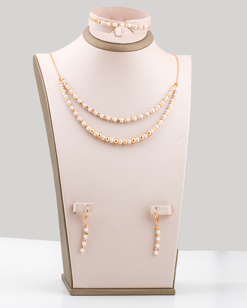 طقم ناعم نسائي من لونسي باللون الذهبي والمطلي بماء الذهب عيار 21 الآمن على البشرة ، يتميز الطقم بأنه مكون من سلسال وحلق واسواره معا يمكنك ارتدائها معا او منفصله ، طبق الأصل من الذهب وصمم خصيصا لعشاق الذهب .