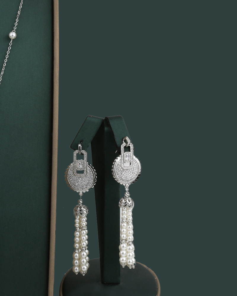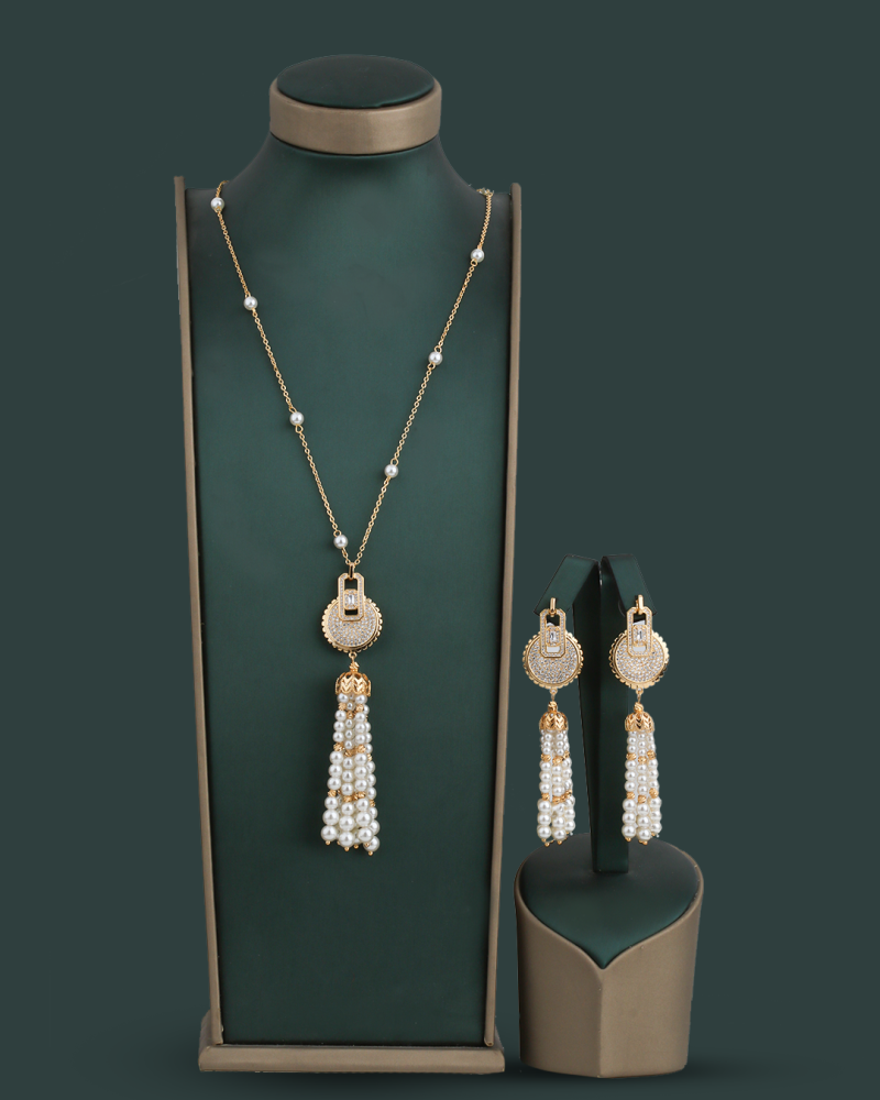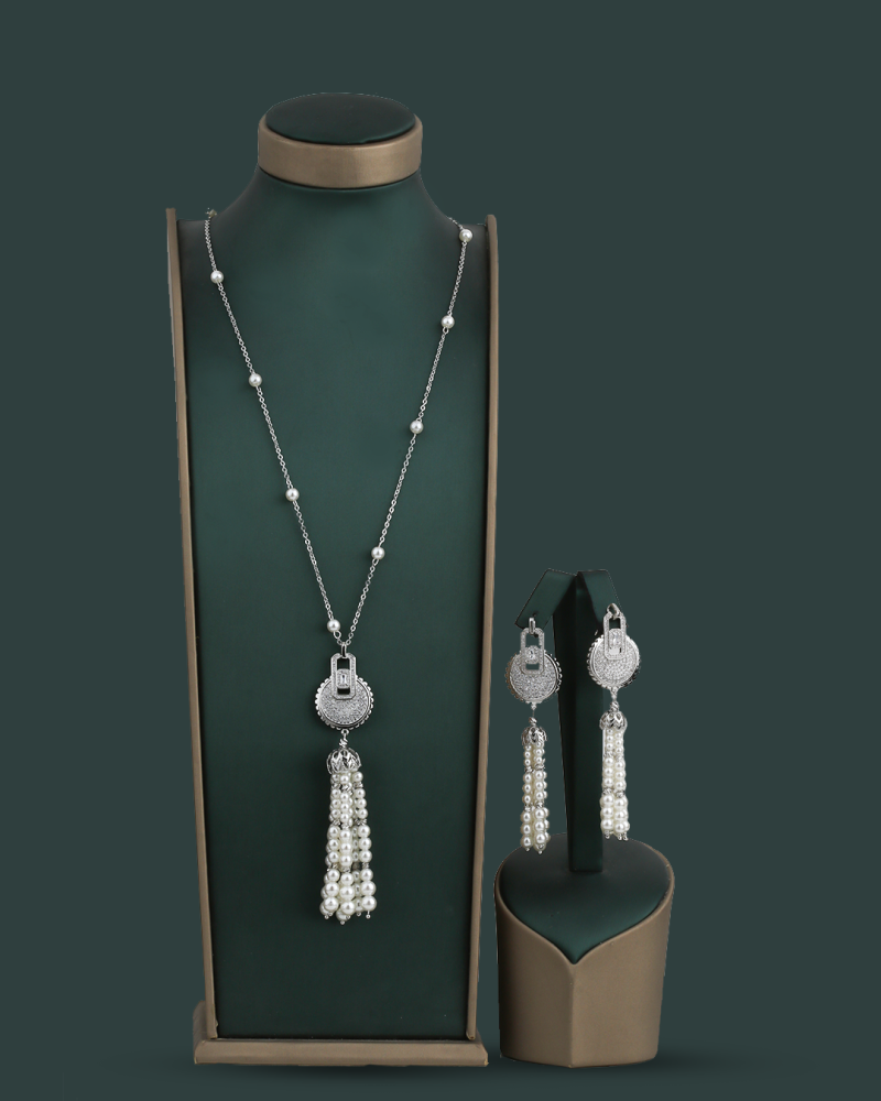 طقم ناعم نسائي من لونسي باللون الذهبي او الفضي والمطلي بماء الذهب عيار 18 الآمن على البشرة ، يتميز الطقم بأنه مكون من سلسال طويل وحلق معا يمكنك ارتدائها معا او منفصله ، طبق الأصل من الذهب وصمم خصيصا لعشاق الذهب .