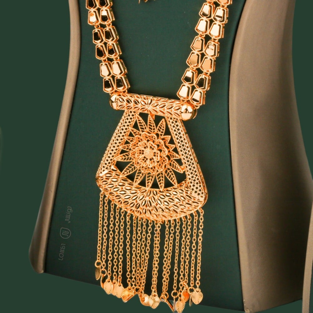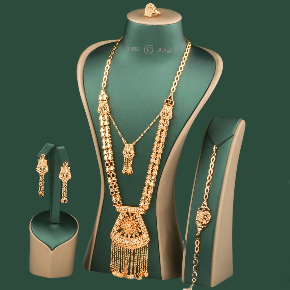 طقم كبير نسائي من لونسي باللون الذهبي والمطلي بماء الذهب عيار 21 الآمن على البشرة ، يتميز الطقم بأنه مكون من سلسال وخاتم وحلق واسوارة معا يمكنك ارتدائها معا او منفصله ، طبق الأصل من الذهب وصمم خصيصا لعشاق الذهب يقدم في علبه فاخره مناسبة للاهداء . مقاس الخاتم مفتوح يناسب جميع المقاسات .