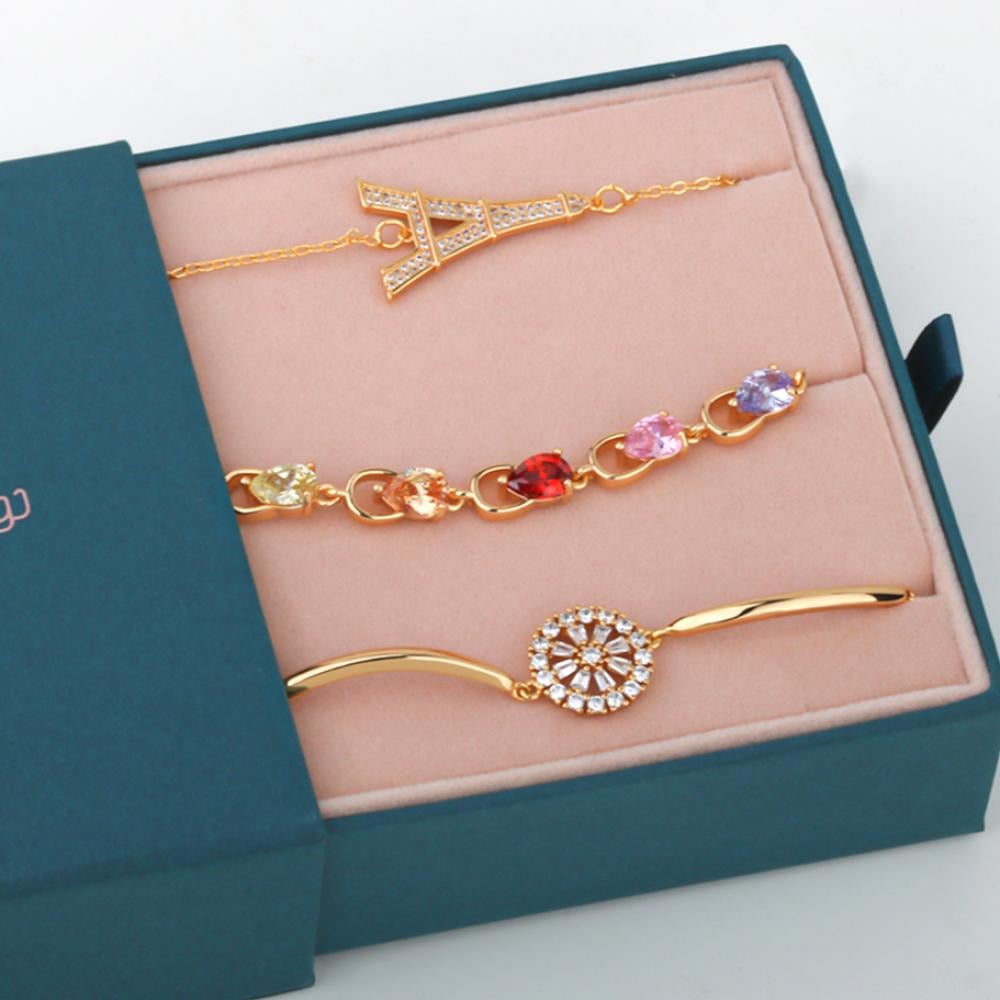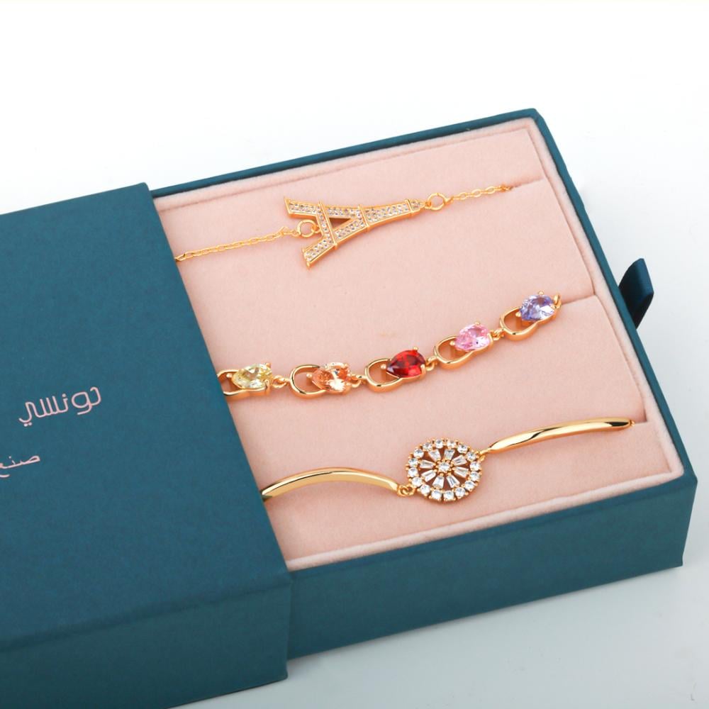 3 اساور نسائيه من ماركة لونسي ، طقم ثلاث اساور باللون الذهبي بتصاميم ناعمه مختلفه ، صممت الأساور بتصاميم أنيقه وبسيطه يمكنك إرتدائها كل واحده على حده او إرتدائها سويا ، تتميز الأساور بقفل سحب ليناسب مقاس معصمك ، ويمكنك تنسيق و إرتداء الاساور الثلاث معا مع لبس أنيق لطله أنثويه . لتحظي بتجربه ممتعه وفرنا لك : بوكس وتغليف مجاني جذاب وأنيق مناسب للاهداء ،