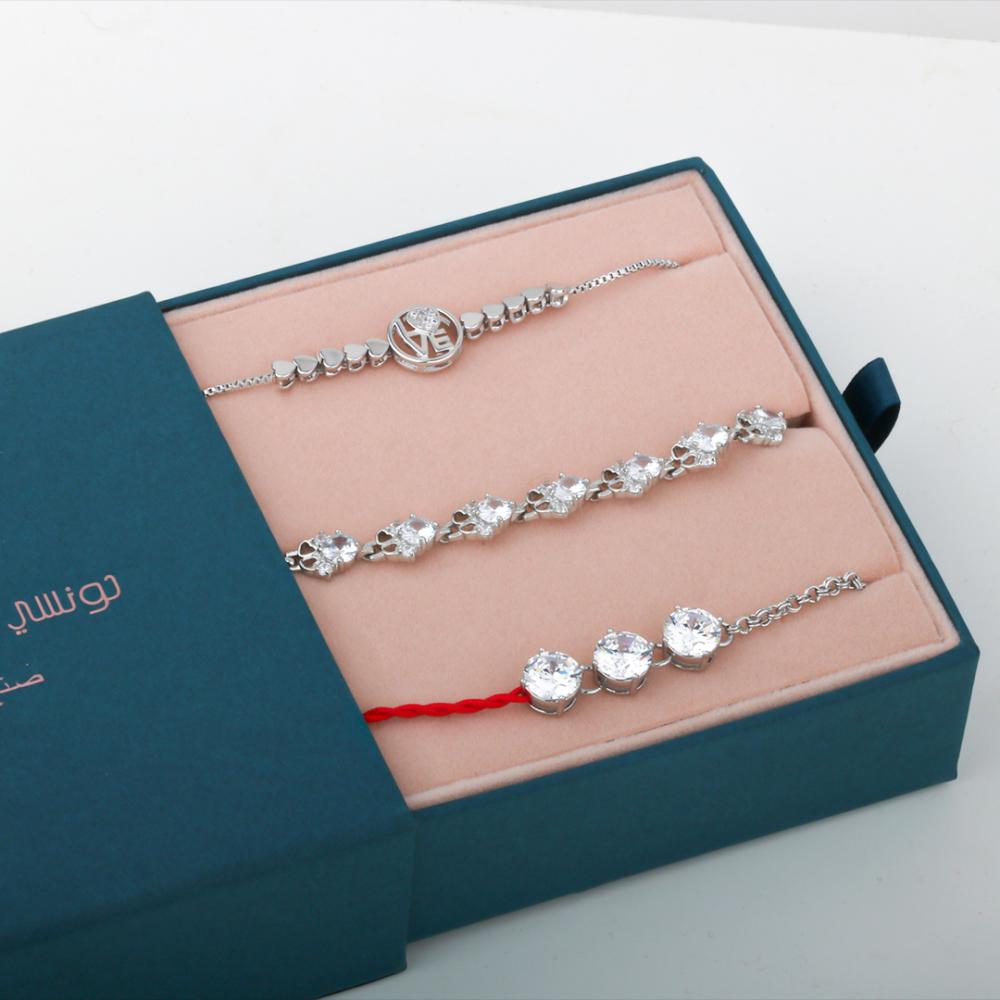 3 اساور نسائيه من ماركة لونسي ، طقم ثلاث اساور باللون الذهبي بتصاميم ناعمه مختلفه ، صممت الأساور بتصاميم أنيقه وبسيطه يمكنك إرتدائها كل واحده على حده او إرتدائها سويا ، تتميز الأساور بقفل سحب ليناسب مقاس معصمك ، ويمكنك تنسيق و إرتداء الاساور الثلاث معا مع لبس أنيق لطله أنثويه . لتحظي بتجربه ممتعه وفرنا لك : بوكس وتغليف مجاني جذاب وأنيق مناسب للاهداء ،