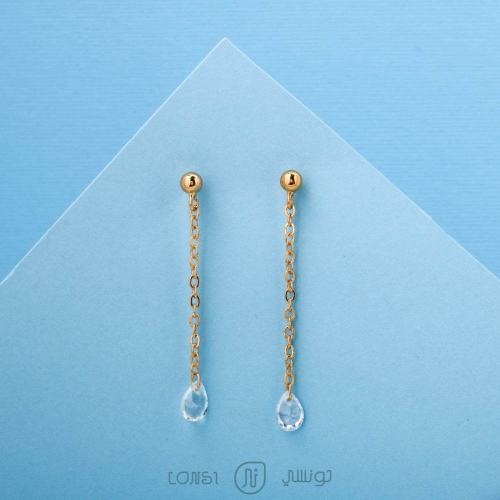 حلق نسائي من لونسي باللون الذهبي عيار الذهب 21 الآمن على البشرة ، تتميز ببساطتها ، تصميم عالمي بحجم ناعم صغير .