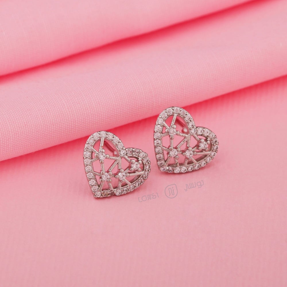 حلق نسائي من لونسي باللون الفضي الآمن على البشرة ، تتميز ببساطتها ، صمم الحلق بكرستال تصميم دائري بحجم ناعم صغير .