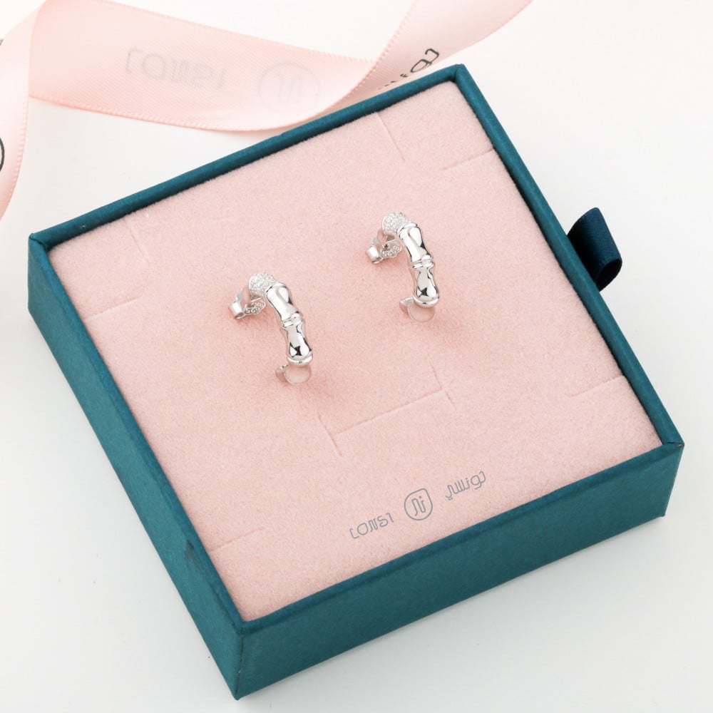 حلق فضة ناعم عيار 925 من ماركه لونسي ، أنيق ناعم مرصع بفصوص الزركون البراقه ومناسب للبس اليومي ، صمم السلسال باللون الفضي بطلاء الروديوم . حجم الحلق ناعم متوسط .
