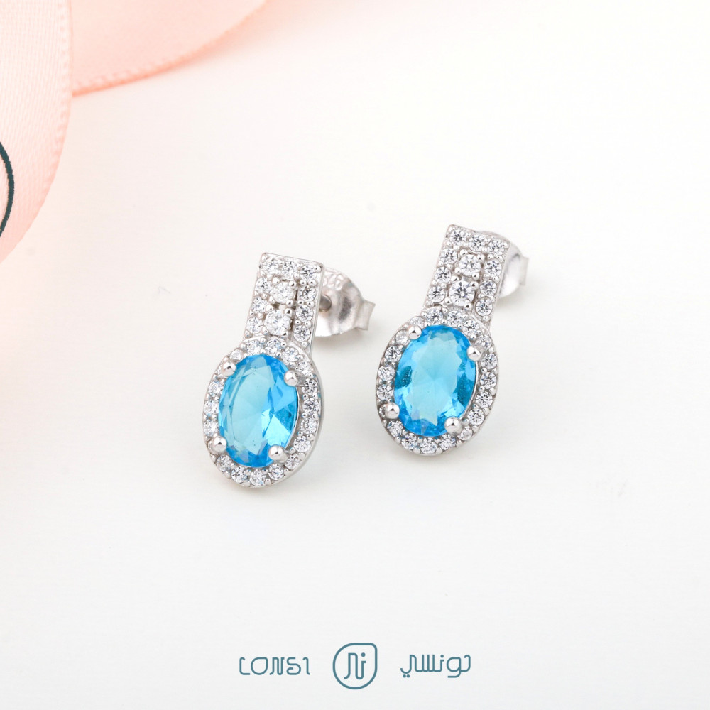 حلق فضة ناعم عيار 925 من ماركه لونسي ، أنيق ناعم مرصع بفصوص الزركون البراقه ومناسب للبس اليومي ، صمم السلسال باللون الفضي بطلاء الروديوم . حجم الحلق ناعم .