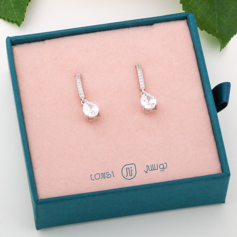 حلق فضة ناعم عيار 925 من ماركه لونسي ، أنيق ناعم مرصع بفصوص الزركون البراقه ومناسب للبس اليومي للنساء والاطفال ،