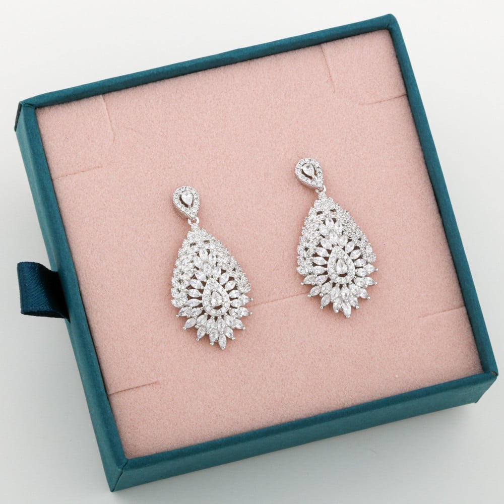 حلق ناعم مناسب للعرائس باللون الفضي والمرصع بالزركون الأصلي المشابه للألماس من ماركة لونسي ، صمم الحلق ليضيف أجمل لمسة من الاناقه على مظهرك في أجمل أيام العمر .