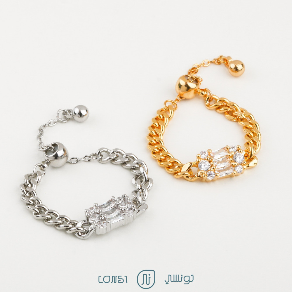 خاتم من ماركة لونسي ، باللون الذهبي المطلي بماء الذهب عيار 18 . صمم الخاتم بمقاس مفتوح بخاصية السحب ليناسب جميع الماسات . يتميز بجودة عاليه ليناسب اللبس الدائم .