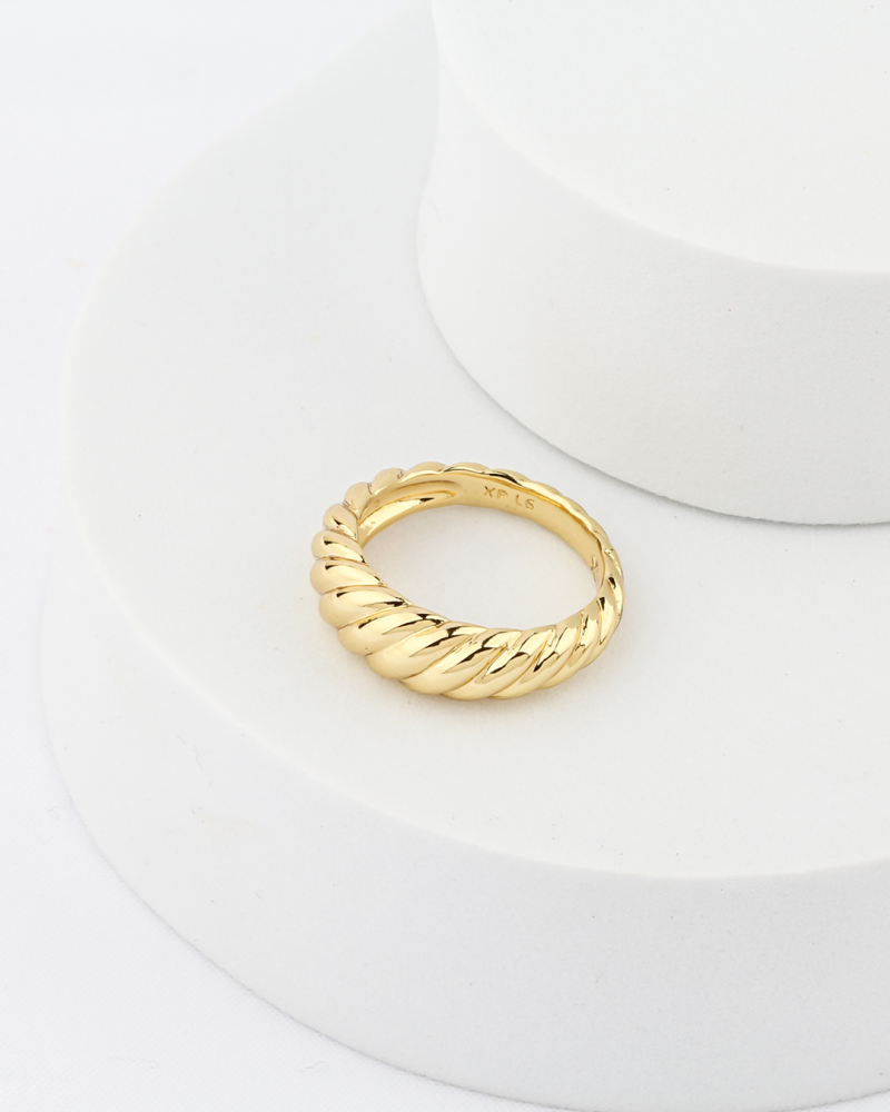 خاتم زركون فاخر – مطلي بالذهب عيار 14 | تصميم ناعم وبسيط | ضمان 3 سنوات | تغليف لونسي الفاخر