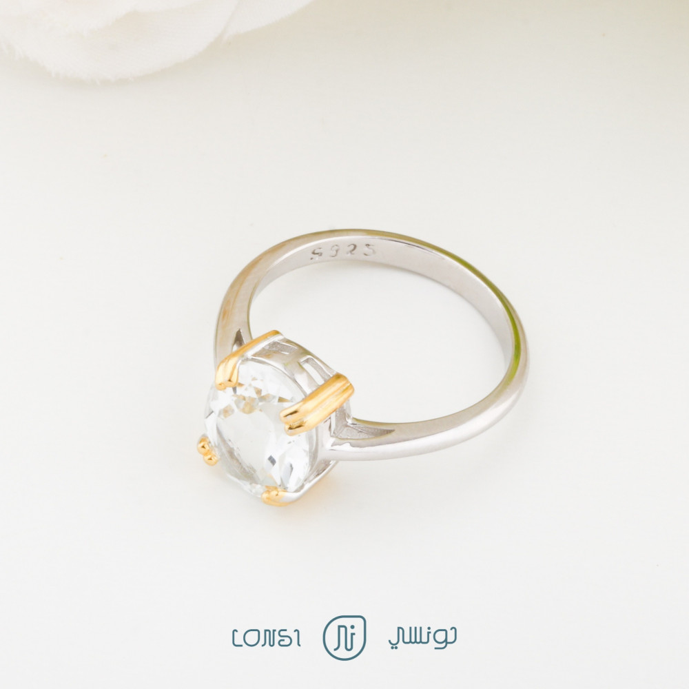 خاتم فضة ناعم عيار 925 مستوحى من الطبيعه في الحدائق الغناء وجمالها الخلاب، تقدم لكِ مجوهرات لونسي خاتم رائع مصاغ الفضة عيار 925 بالاضافة الى الاحجار الكريمه من نوع توباز ابيض . يتميز بشكل سوليتير بيضاوي مشع مرصعة بأحجار التوباز المشعه . خاتم يناسب إطلالاتك المختلفة الرائعة .