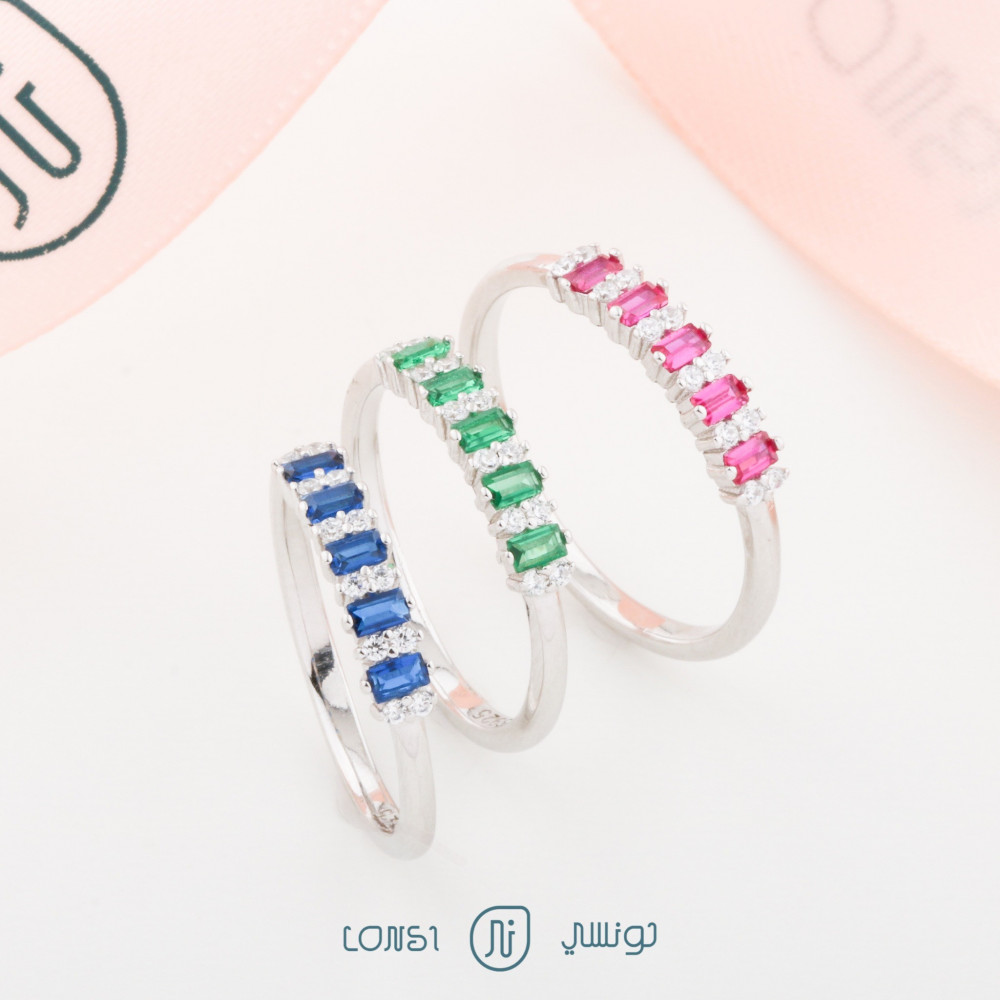 خاتم فضة ناعم عيار 925 بتصميم متفرد ، خاتم أنيق ناعم مرصع بفصوص الزركون البراقه ومناسب للبس اليومي ، صمم الخاتم باللون الفضي بطلاء الروديوم الآمن على البشرة .