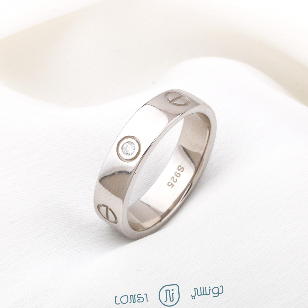 خاتم فضة ناعم عيار 925 بتصميم متفرد ، خاتم أنيق مناسب للبس اليومي ، صمم الخاتم باللون الفضي بطلاء الروديوم الآمن على البشرة .