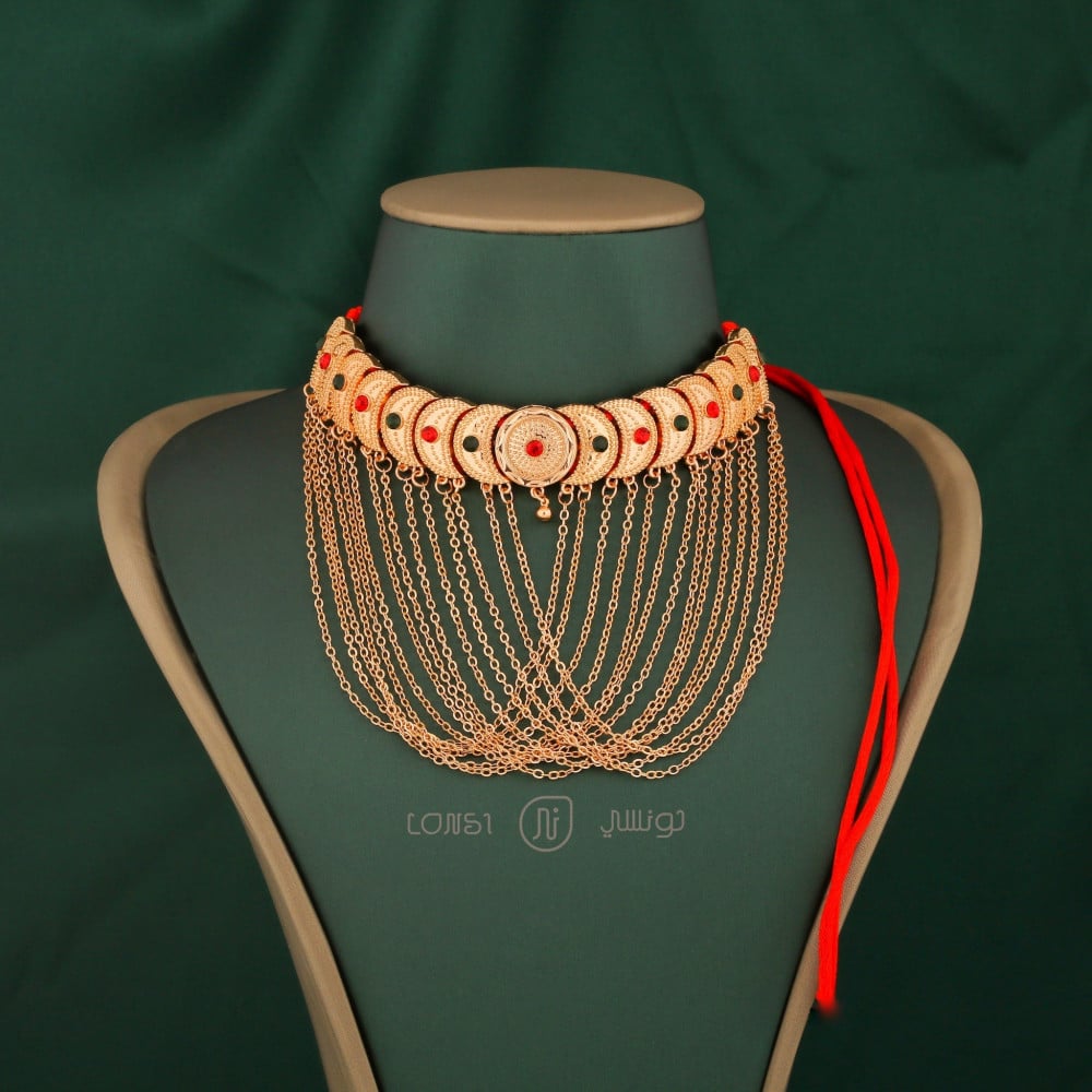 خناق فخم بتصميم رمضاني رائع يحاكي الذهب عيار 21 , يتميز بانه مطلي بماء الذهب عيار 21 الآمن على البشرة . يقدم في علبة فاخرة مناسبة للاهداء .