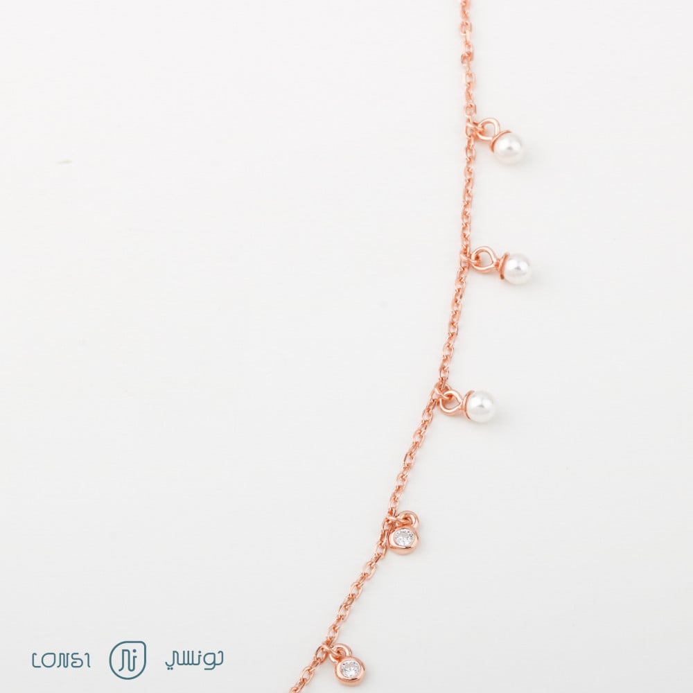 عقد فضة عيار 925 من ماركه لونسي ، عقد أنيق ناعم مناسب للبس اليومي ، صمم باللون الروز قولد بطلاء الذهب عيار 18.