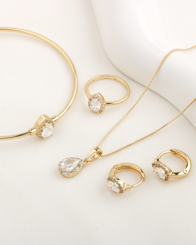 الطقم مطلي بـ ذهب عيار 14 النقي ✨، ومُصمم خصيصًا ليناسب بشرة الأطفال الحساسة بكل راحة وأناقة.