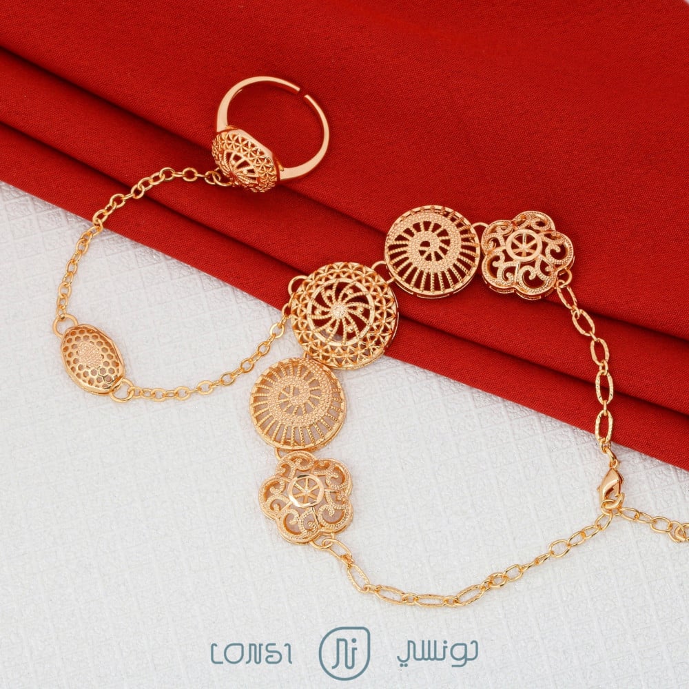 كف نسائي رائع بتصميم مميز يحاكي الذهب عيار 21 من لونسي. صممت لمحبي التصاميم المشابهة للذهب . تأتيك بلمسة مميزة وآمنه على البشرة . وصمم الخاتم بطريقه مفتوحه ليناسب جميع المقاسات . تقدم في علبة فاخرة مناسبة للاهداء .