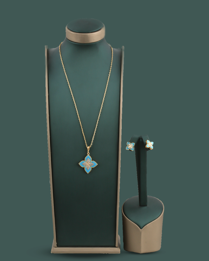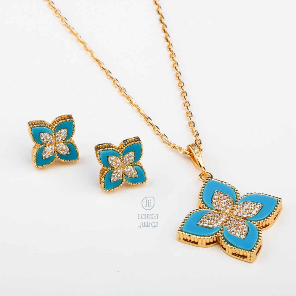 نص طقم ناعم صغير من لونسي باللون الذهبي والمطلي بماء الذهب عيار 18 ( اللون الفاتح ) الآمن على البشرة ، يتميز الطقم بأنه مكون من سلسال وحلق معا يمكنك ارتدائها معا او منفصله ، صمم ليناسب إطلالتك الأنيقة . يقدم الطقم في علبة فاخرة مناسبة للاهداء .