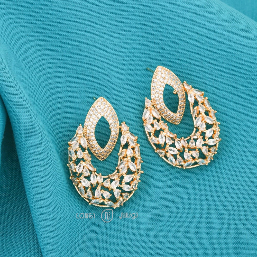 حلق فخم مناسب للعرائس باللون الذهبي والمرصع بالزركون الأصلي المشابه للألماس من ماركة لونسي ، صمم الحلق ليضيف أجمل لمسة من الاناقه على مظهرك في أجمل أيام العمر .