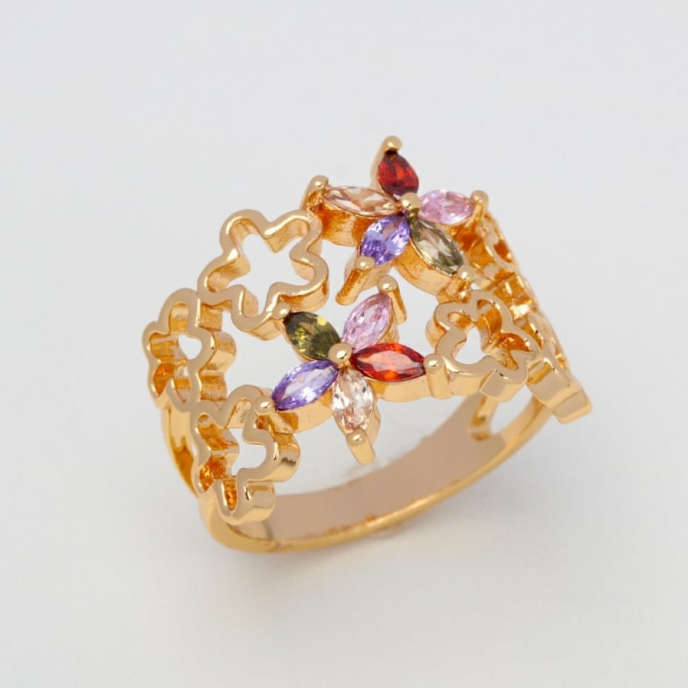 خاتم نسائي بتصميم مميز وعصري باللون الذهبي عيار الذهب 21 من لونسي . صمم الخاتم لمحبي الخواتم الملونة . يأتيك هذا الخاتم مرصع بلمسة من الزركون الملون الفاخر المشابه للألماس .