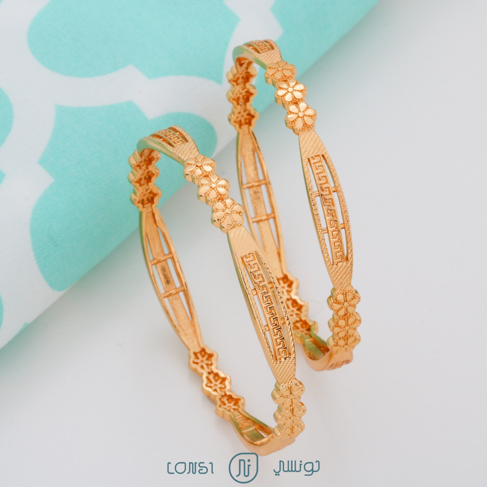 بناجر ذهبي من لونسي مطلية بماء الذهب عيار 21 الآمن على البشرة ، يتميز بأنه ثابت اللون مع الاستخدام . يقدم في علبة فاخرة مناسبة للاهداء . نرجو اختيار المقاس المناسب للمعصم بعناية